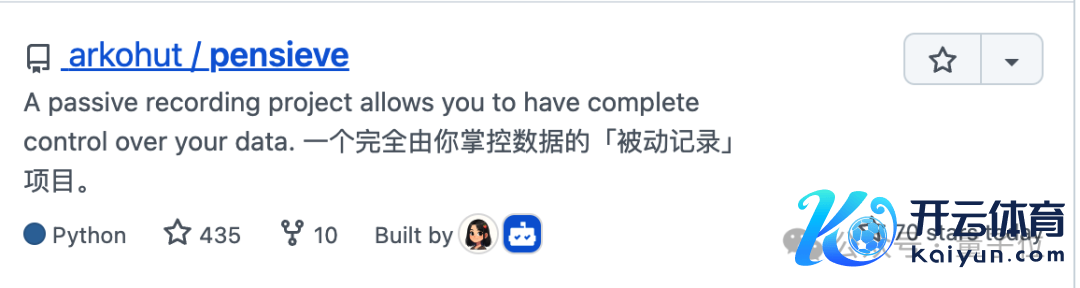 GitHub:https://github.com/arkohut/pensieve?tab=readme-ov-file