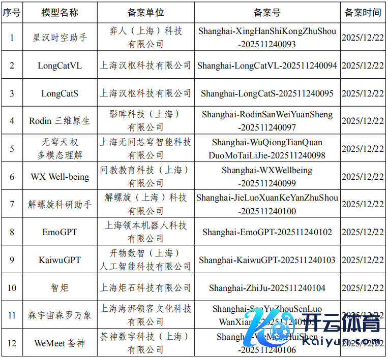 上海市新增12款已完成备案的生成式东说念主工智能业绩体育游戏app平台上海市新增12款已完成备案的生成式东说念主工智能业绩
