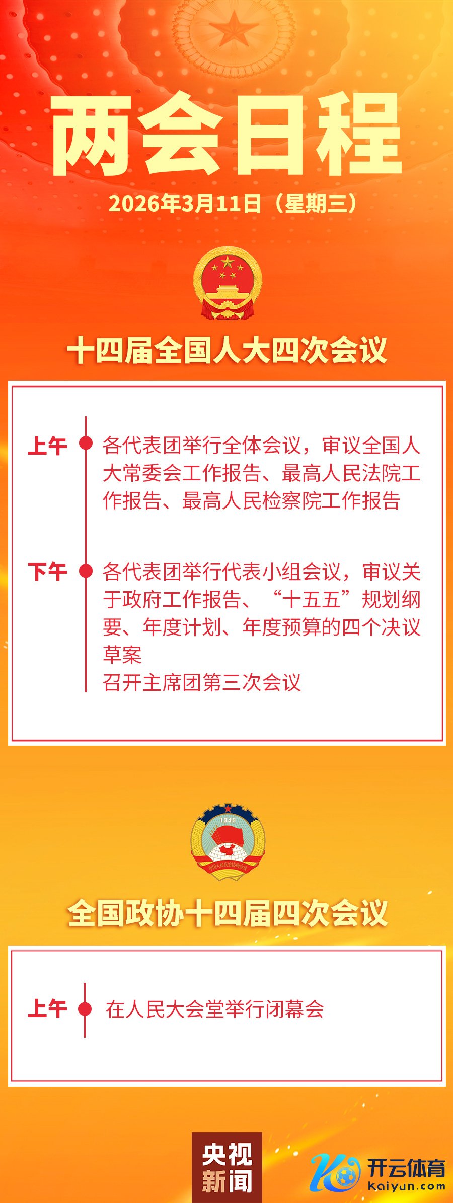 两会日程预报丨3月11日:东说念主代会审议宇宙东说念主大常委会责任请教等 宇宙政协十四届四次会议驱散两会日程预报丨3月11日:东说念主代会审议宇宙东说念主大常委会责任请教等 宇宙政协十四届四次会议驱散